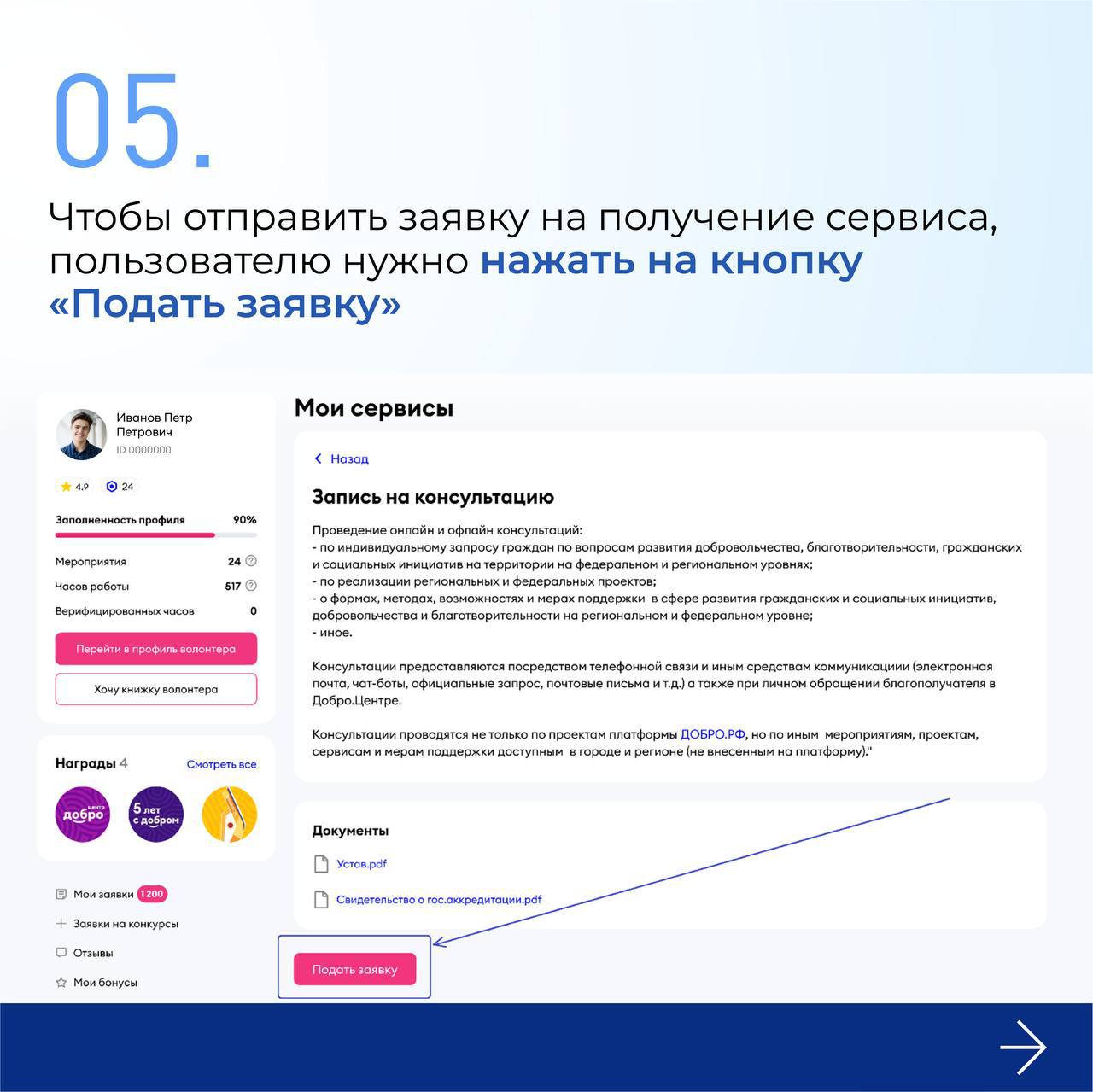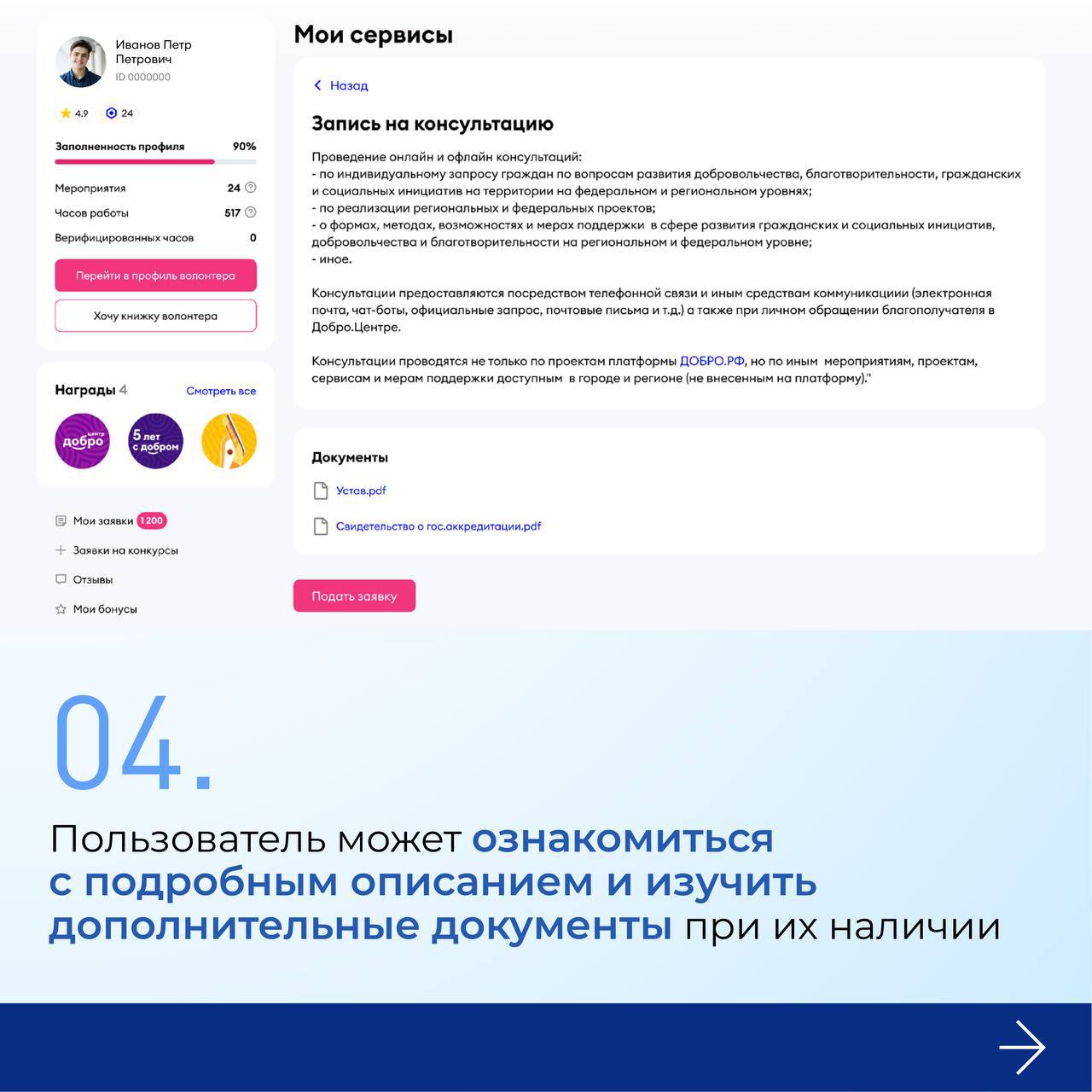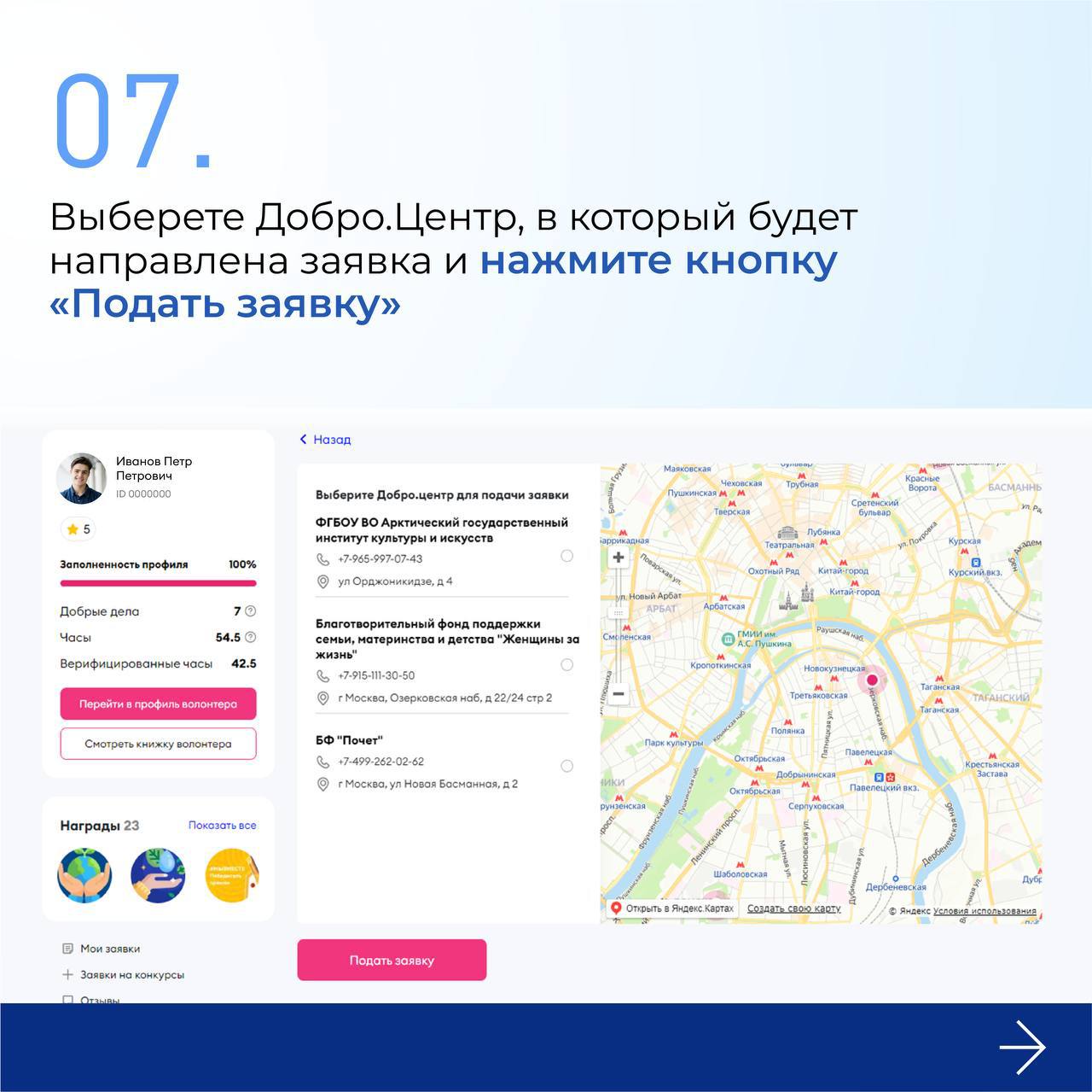 Инструкцию по подаче заявки на получение сервисов Добро.Центра можно найти по ссылке.