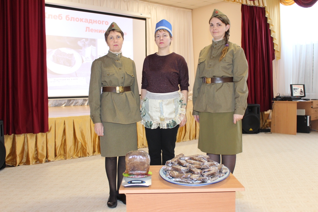 Во время мероприятия педагоги и ребята рассказывали о блокадном хлебе Ленинграда, отом из чего выпекали хлеб и в каких условиях трудились люди. Ребята узнали, что такое норма блокадного хлеба и какая она была в сутки. А в заключительной части мероприятия педагоги раздали всем ребятам ломтик блокадного хлеба – 125 грамм и пояснили, что это была еда (норма) на сутки на одного человека.