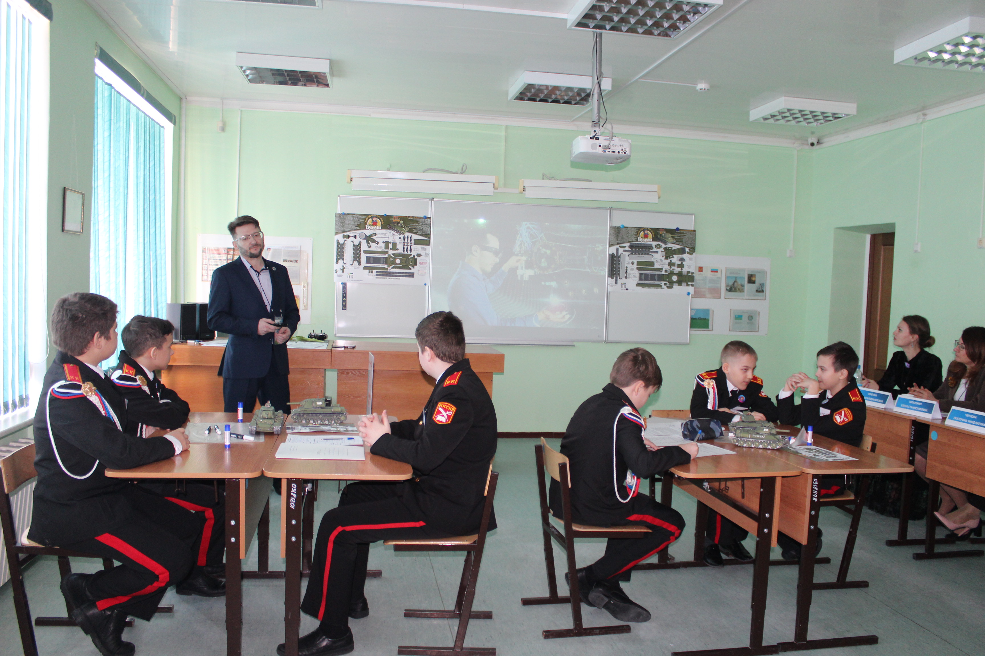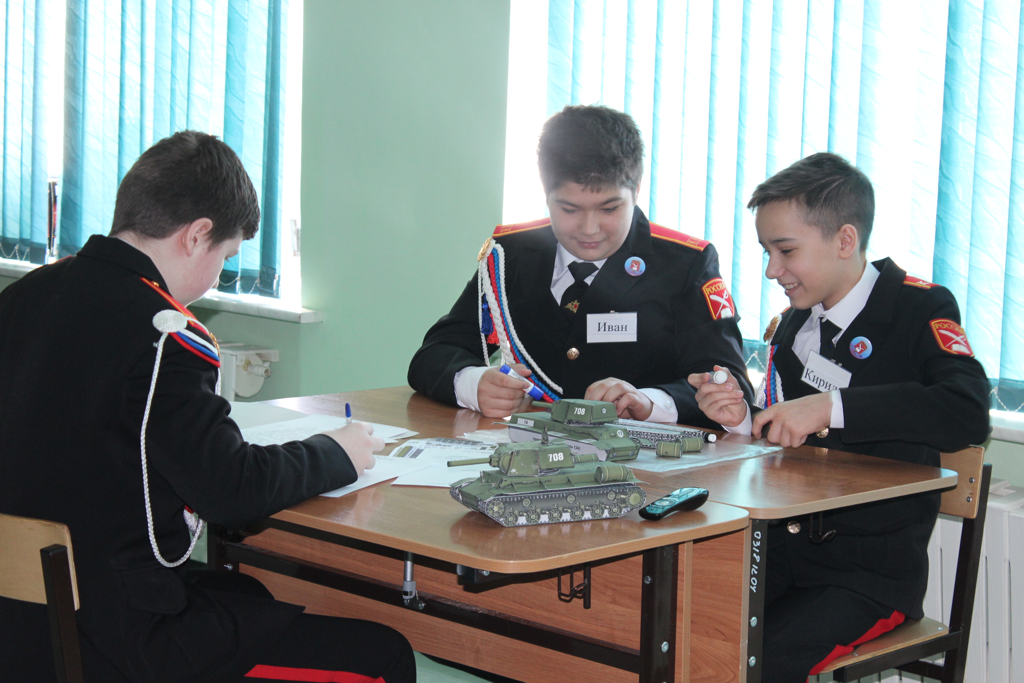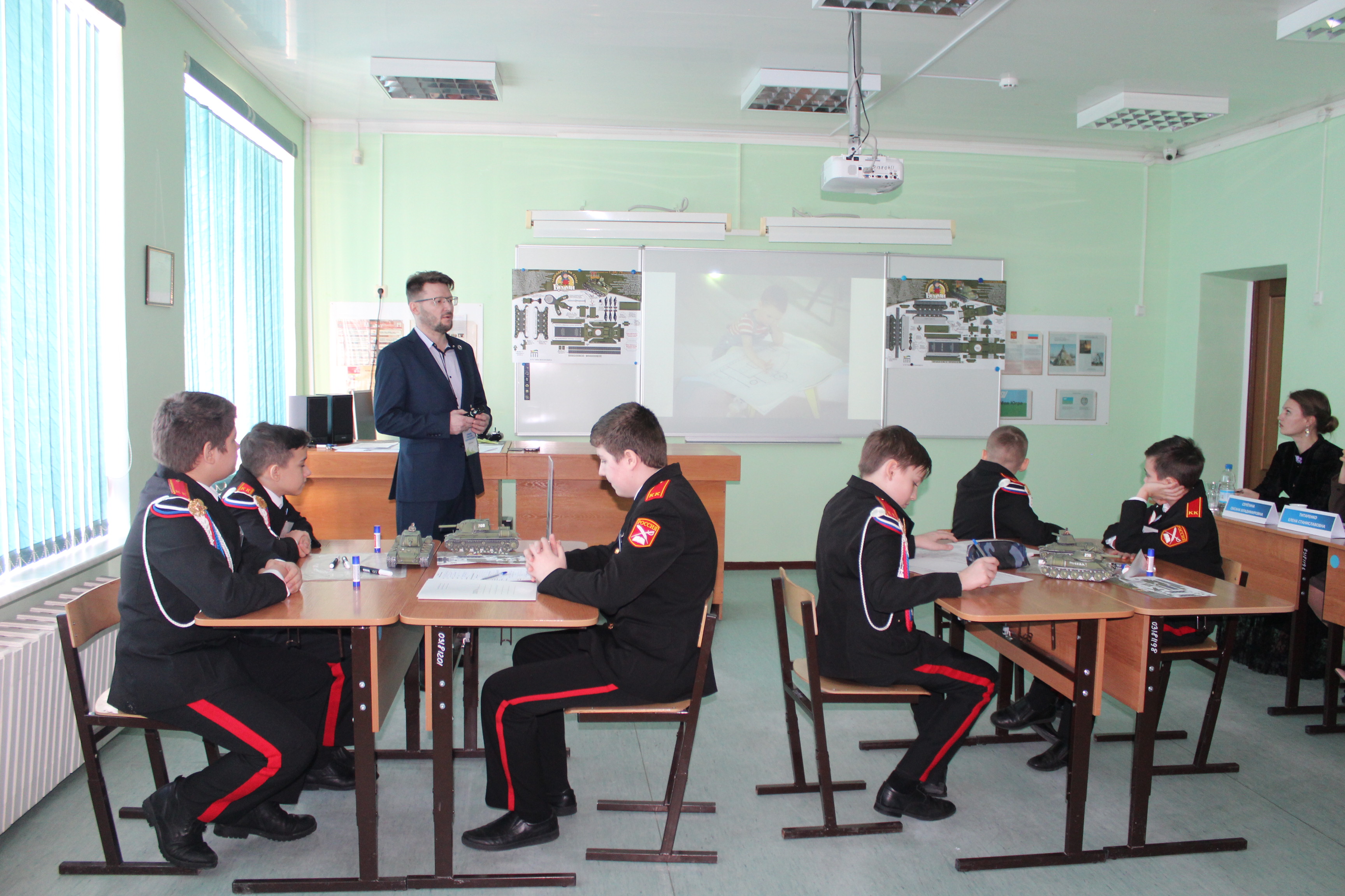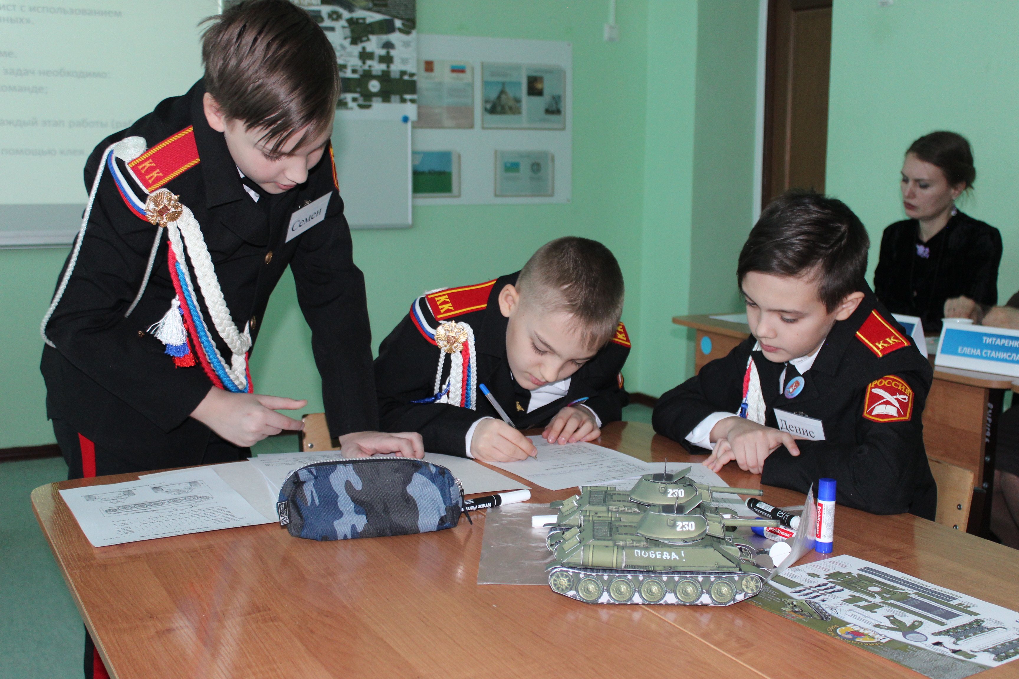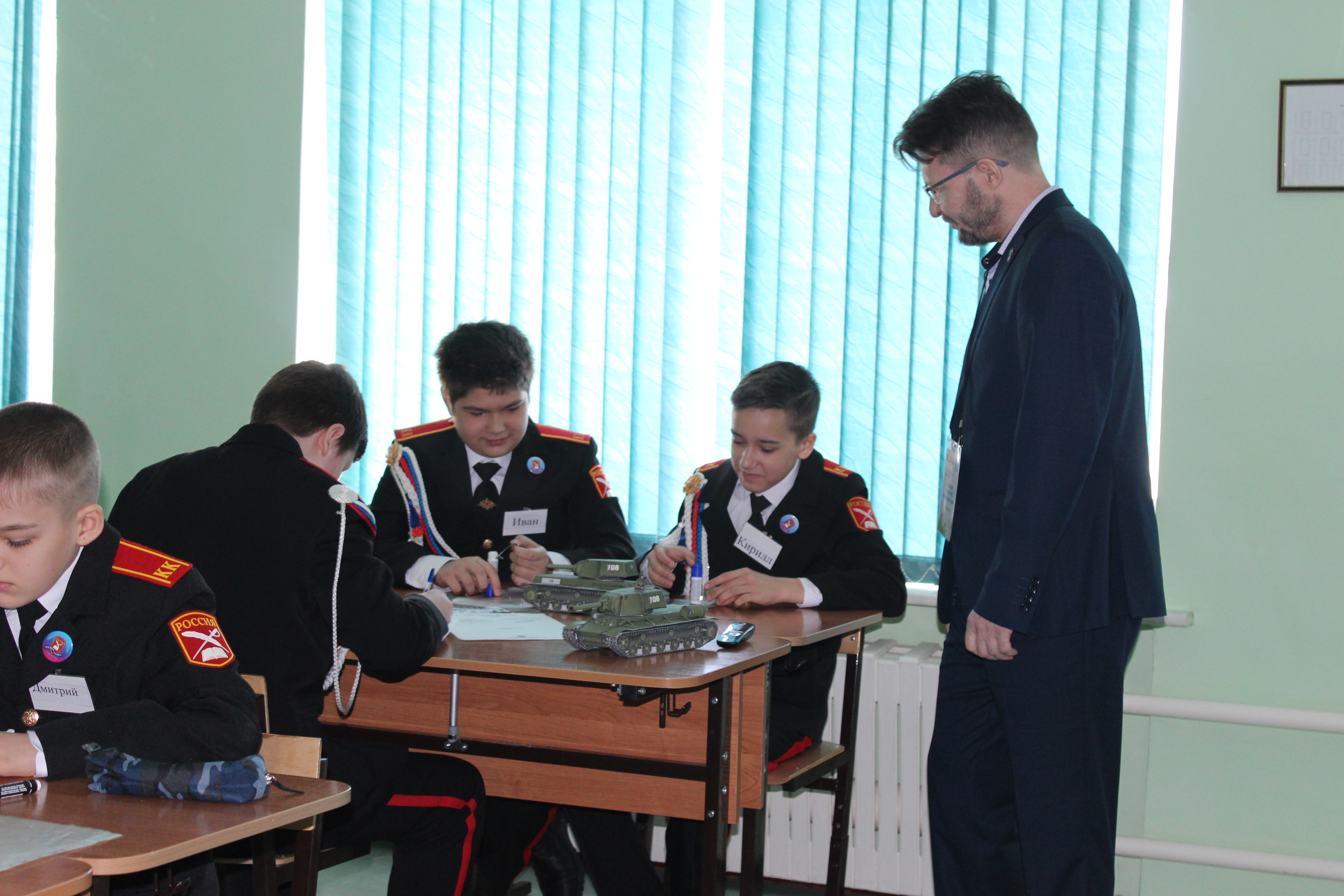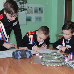 ХРАМОВ Григорий Александрович посвятил свое открытое занятие по стендовому моделированию 75-летию Великой Победы. Учащиеся 6 класса под его руководством изучили особенности советских танков Т-34 и КВ-2 и смогли создать собственные модели. Особо стоит отметить тот факт, что предложенные учащимся документальные материалы по техническим характеристикам танков были рассекречены Министерством Обороны России совсем недавно, поэтому они вызвали неподдельный интерес. На каждой модели танка ребята смогли оставить благодарственные слова победителям Великой Отечественной войны.