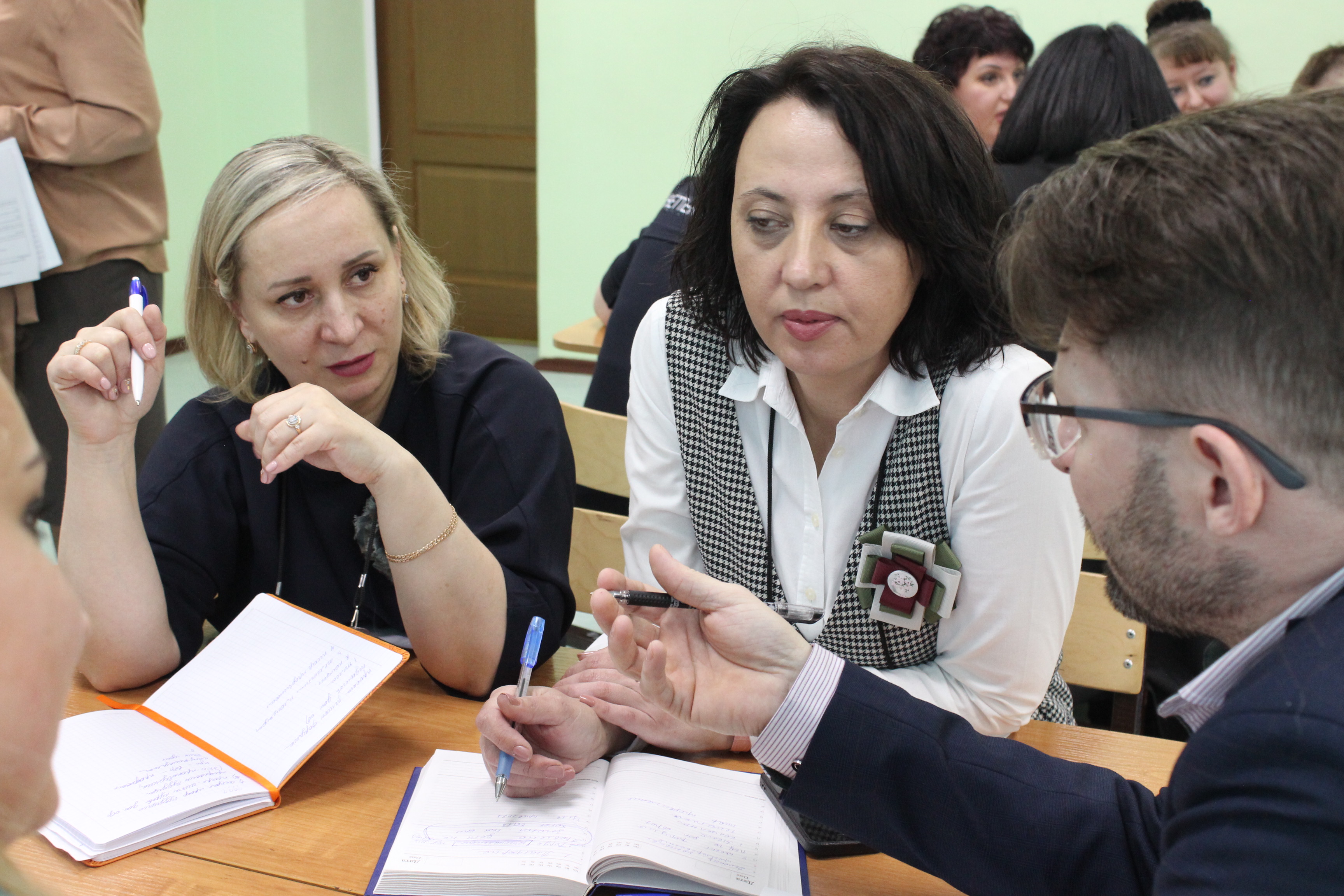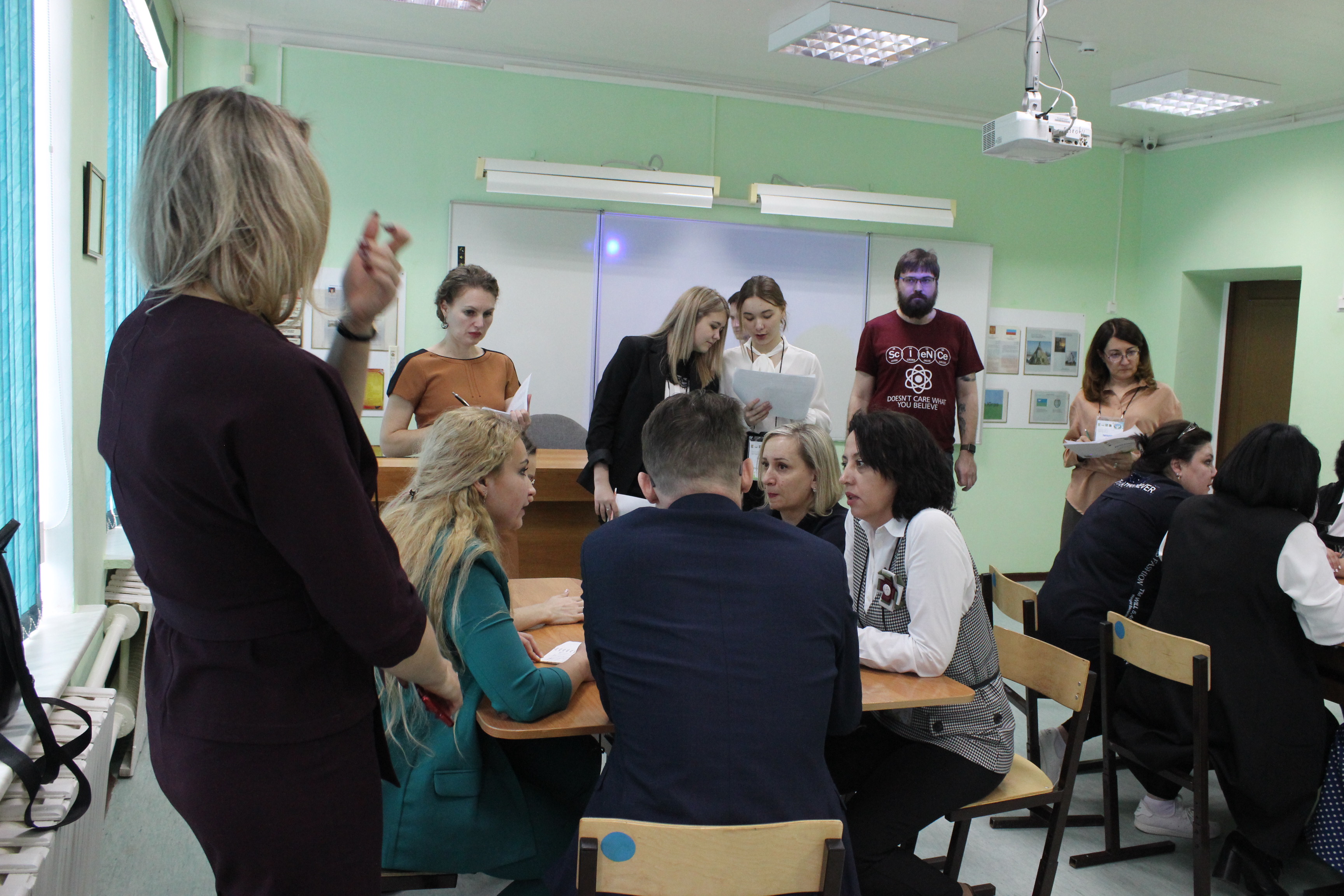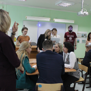 Команда в составе Артемьевой Л.В., Руссу Н.И., Оствальд Р.Р., Храмова Г.А., Морозовой Е.И. представила проект форума профориентационной направленности "Хочу. Могу. Выбираю", Цель данного форума: обмен опытом, устранение пробелов в знаниях педагогов по направлению профориентации. По замыслу команды, одна из площадок форума будет рассчитана на участие в ней школьников, остальные площадки педагоги предлагают представлять по отраслям: медицина, производство, социальная сфера, сфера услуг и экология. На этих площадках будут работать специалисты, задачей которых будет помощь участникам форума в разработке индивидуальных профориентационных маршрутов для учащихся.