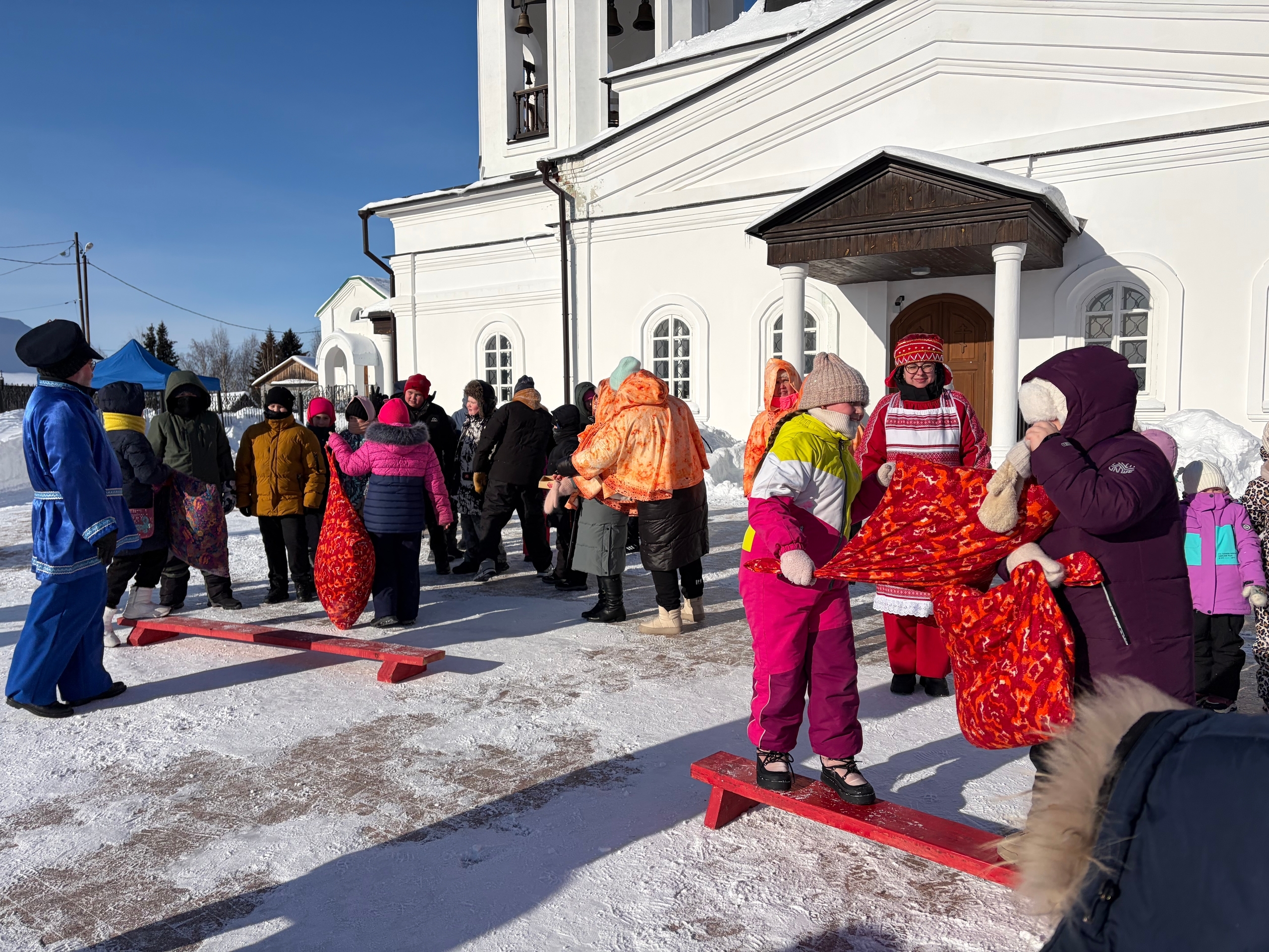 В православии этот период называют Сырной седмицей: время постепенного отказа от мирских удовольствий и духовной подготовки к посту. Масленица объединяет в себе и народные традиции, и христианские ценности — радость общения с близкими, милосердие и внутреннее очищение.22 февраля 2026 года на территории храма Вознесения Господня состоялось традиционное совместное мероприятие «Как на масленой неделе…». Несмотря на мороз, его организовали и провели педагоги Центра дополнительного образования, прихожане храма Вознесения Господня, волонтёры, участники Движения первых средней общеобразовательной школы п. Горноправдинск.Праздник открыл настоятель прихода храма Вознесения Господня иерей Алексей Таланкин. В своём поздравлении он пожелал, чтобы все обиды и невзгоды растаяли вместе со снегом, а весеннее солнце принесло здоровье, счастье, удачу, семейное благополучие и достаток. Священник подчеркнул, что Масленица — это время, когда христиане могут собраться с родными и близкими, уделить внимание семье, быть внимательными к своему духовному состоянию, постепенно подготовиться к Великому посту.Гостей праздника встретили ряженые персонажи «Блины» — они сразу подняли настроение всем присутствующим! Весёлые ведущие зазывали на игры, водили хороводы и зажигательно плясали.Программа была построена на самых популярных на Руси забавах:народные игры и состязания;