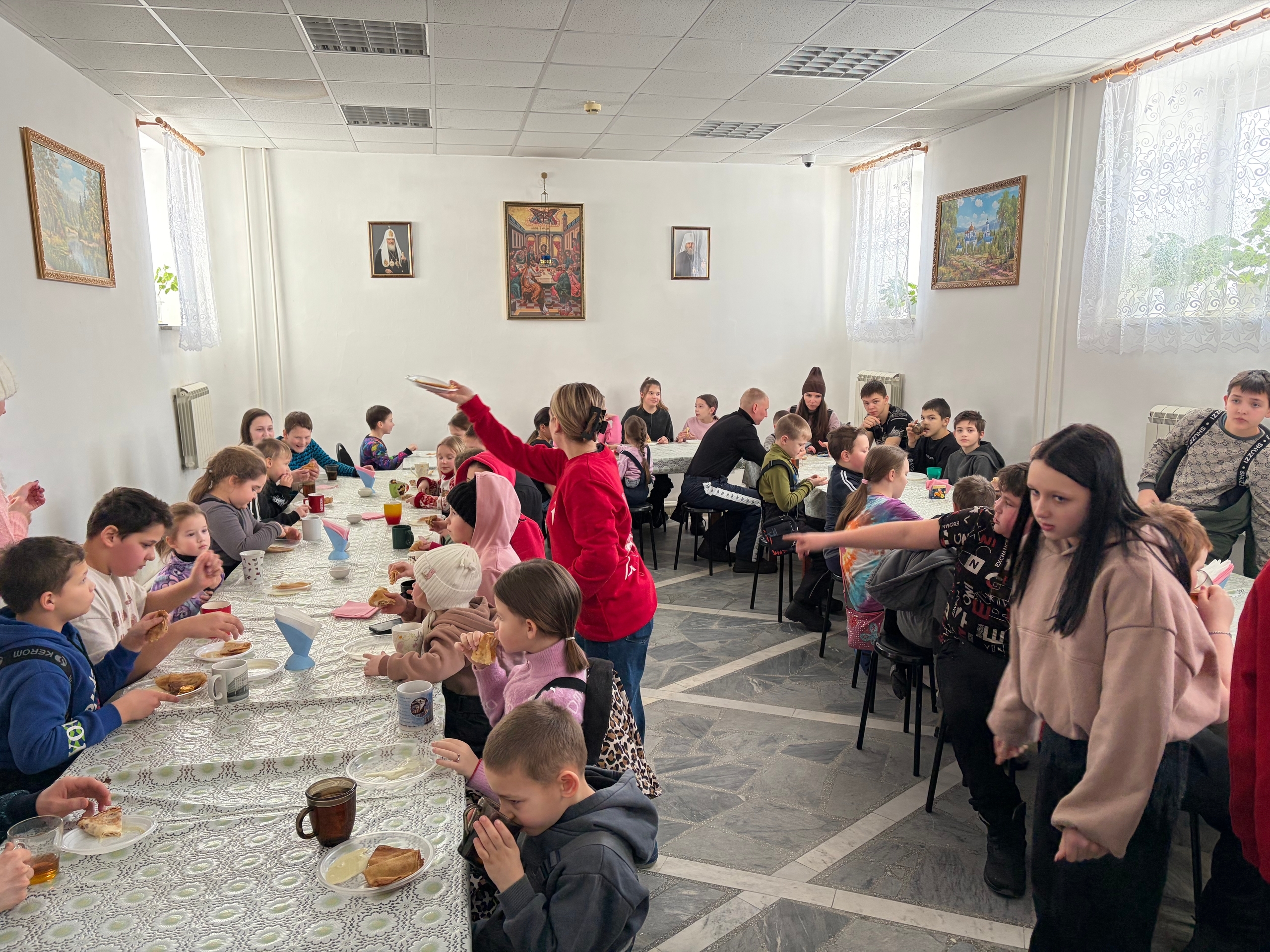 Кульминацией праздника стало угощение. Всех гостей пригласили в трапезную, где их ждали тёплые золотистые блинчики, разнообразные начинки и ароматный горячий чай.За общим столом царила атмосфера тепла, дружелюбия и радости — именно так и должна завершаться Масленичная неделя.Мы выражаем искреннюю благодарность всем, кто помог сделать этот праздник незабываемым: