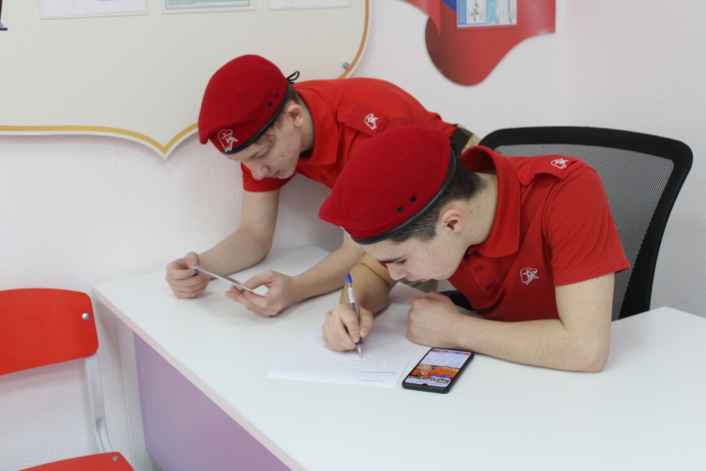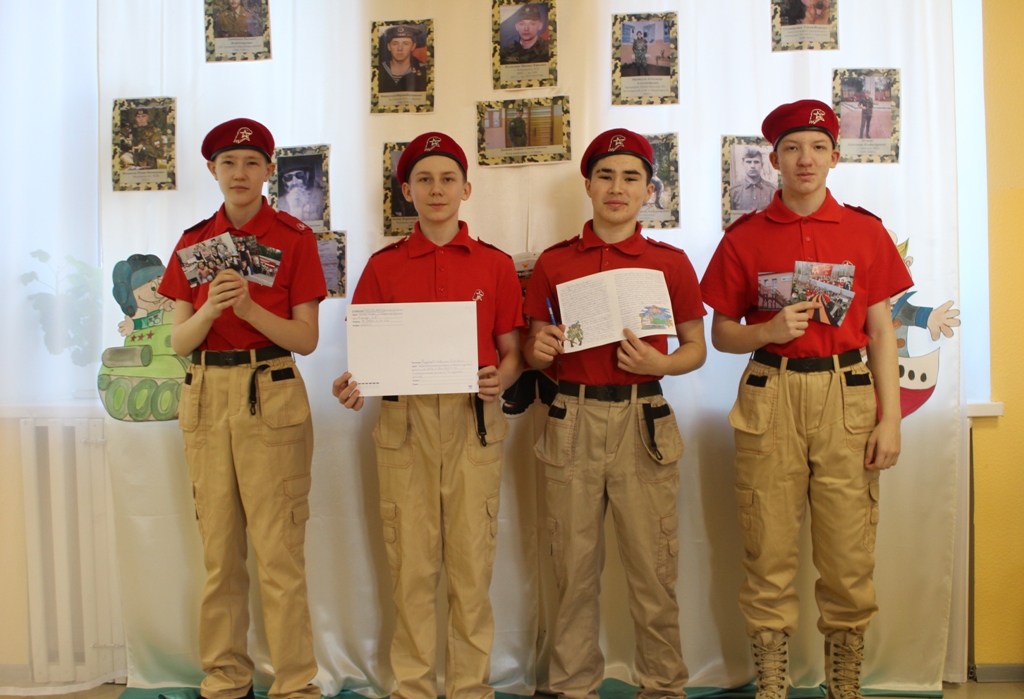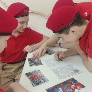 Юнармейцы с воодушевлением и энтузиазмом принялись писать письмо, в котором рассказали о Юнармейском движении, об образовательном учреждении, о мероприятиях, проходящих в Центре дополнительного образования. Так же ребята поздравили Савелия с приближающимся праздником и пожелали легкой службы, мирного неба и хороших друзей.