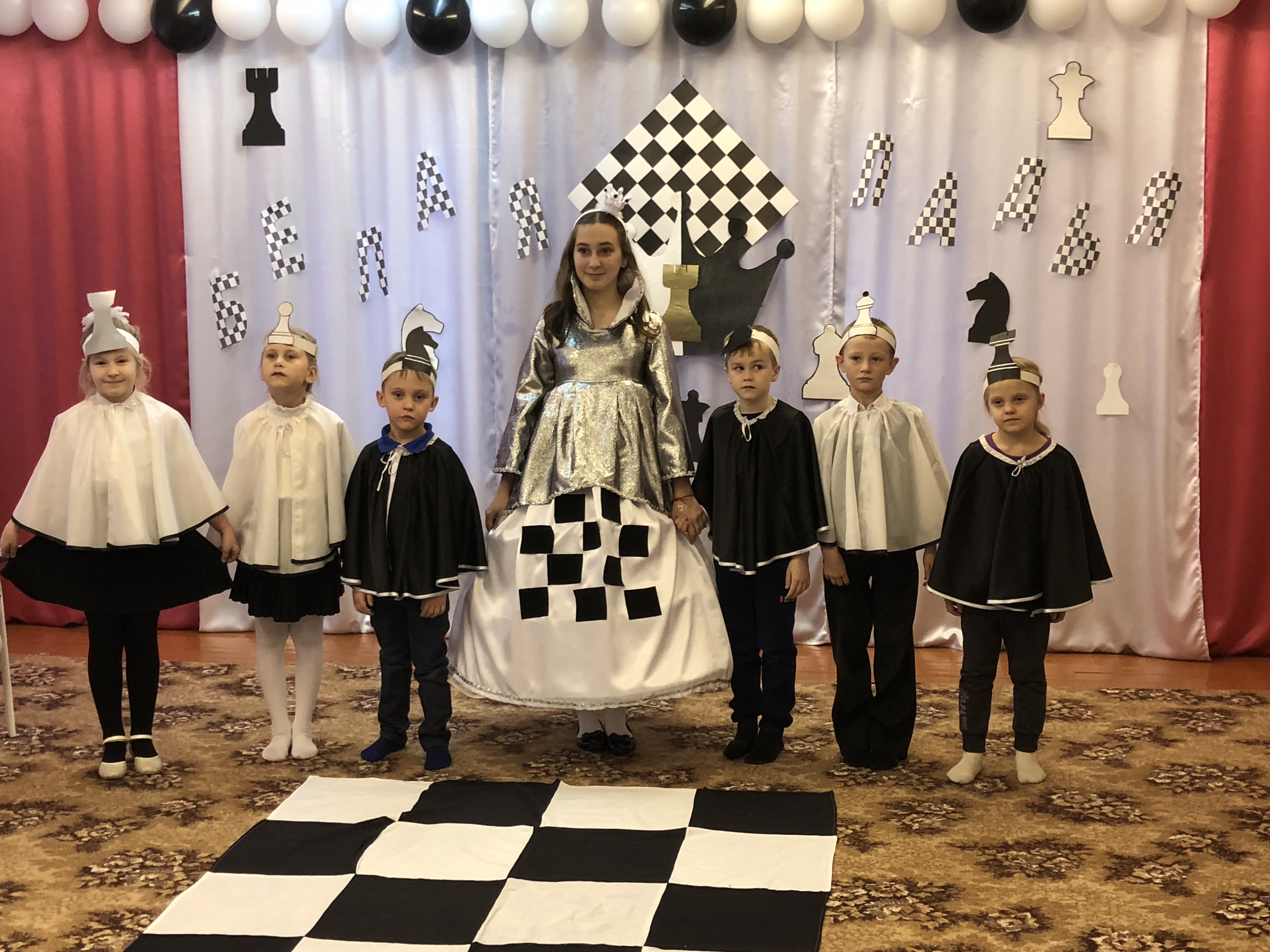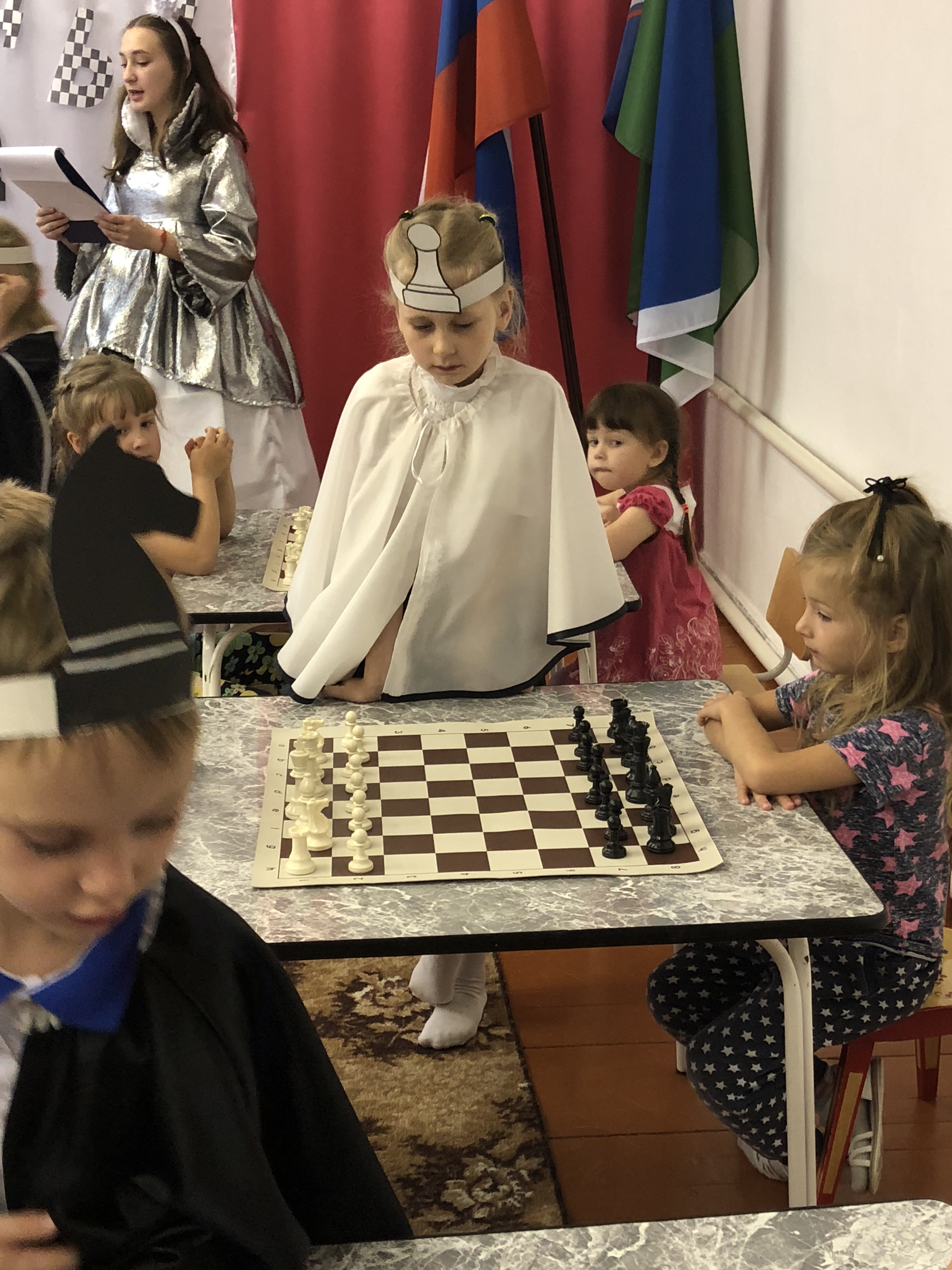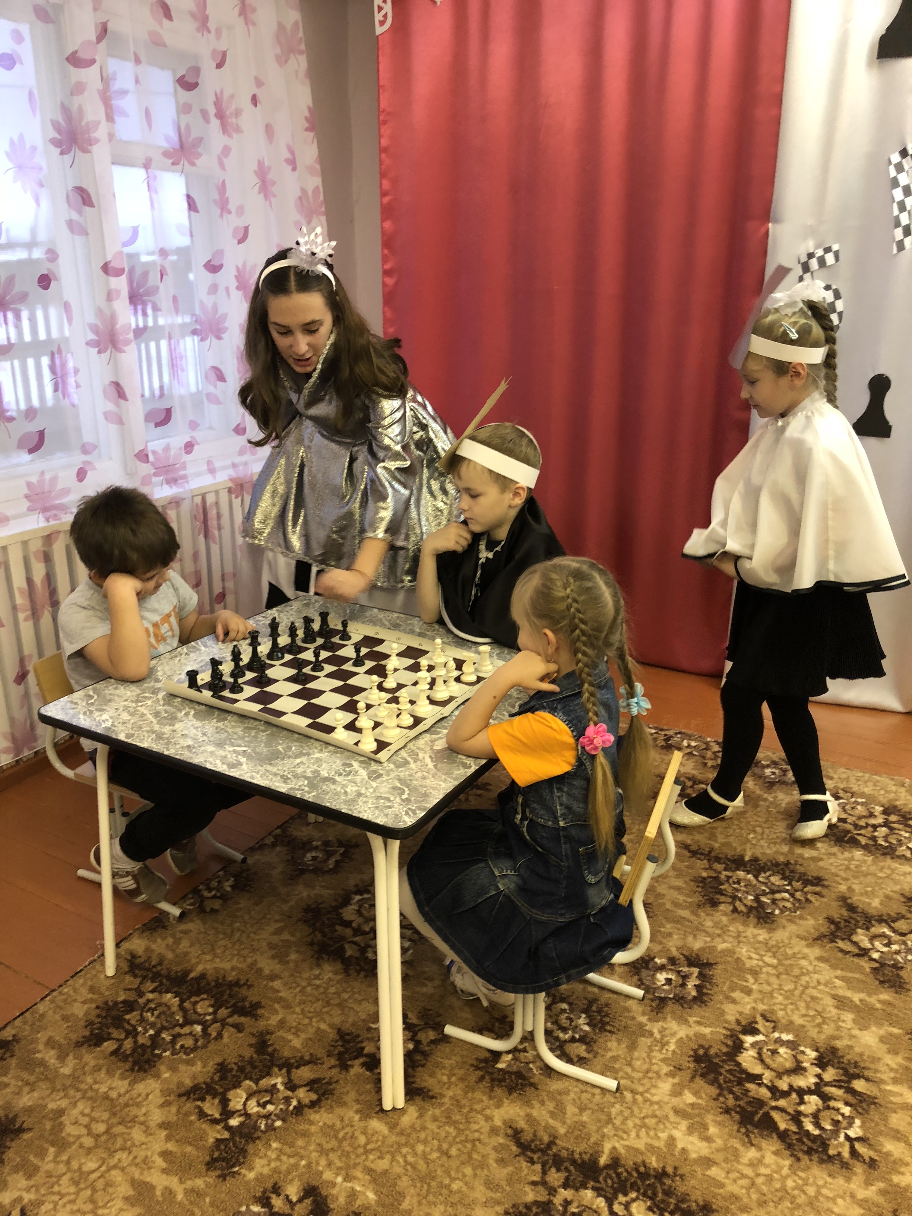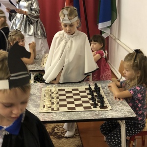 Обучающиеся объединения «Белая ладья» под руководством педагога дополнительного образования Кошелевой Анны Александровны познакомили воспитанников старшей группы муниципального казенного дошкольного образовательного учреждения Ханты-Мансийского района «Детский сад «Голубок» п. Луговской» с шахматными фигурами. Шахматная королева рассказала, как ходит каждая фигура, как она выглядит, а дети охотно отвечали на вопросы. В конце мероприятия Белая королева предложила сыграть партию, а шахматные фигуры помогали малышам в трудных ситуациях.