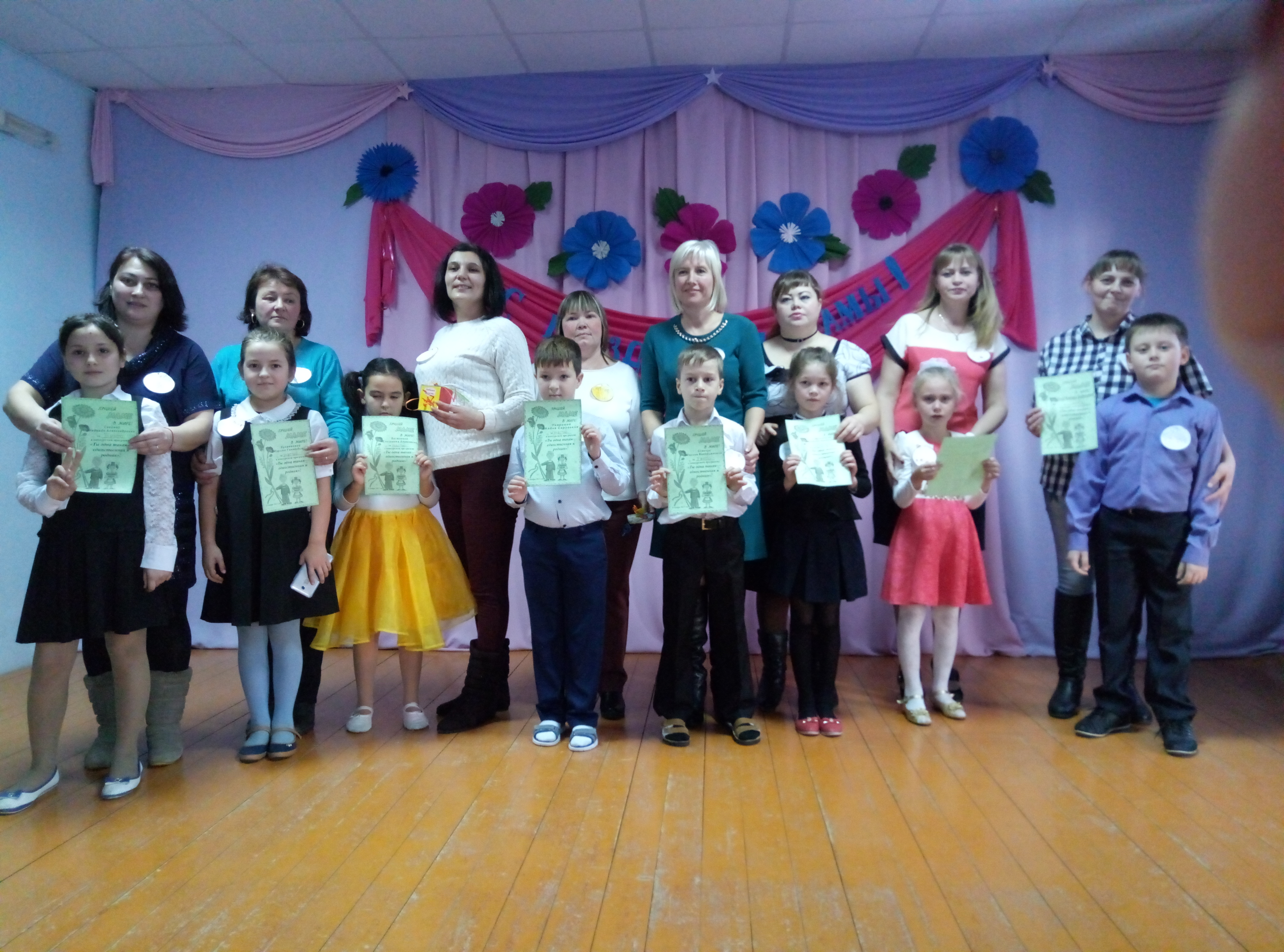 В конкурсной программе, посвященной Дню матери приняли участие восемь семейных пар: Сосова Надежда Александровна и Лилия, Кугаевская Марина Геннадьевна и Галина. Еленчук Марина Валерьяновна и Артем, Шанаева Марина Степановна и Амина, Козлова Анна Евгеньевна и Анна, Кривошеева Виктория Владимировна и Штурц Демьян, Васюкова Елизавета Алексеевна и София, Уварова Алена Сергеевна и Цыбуляк Максим.