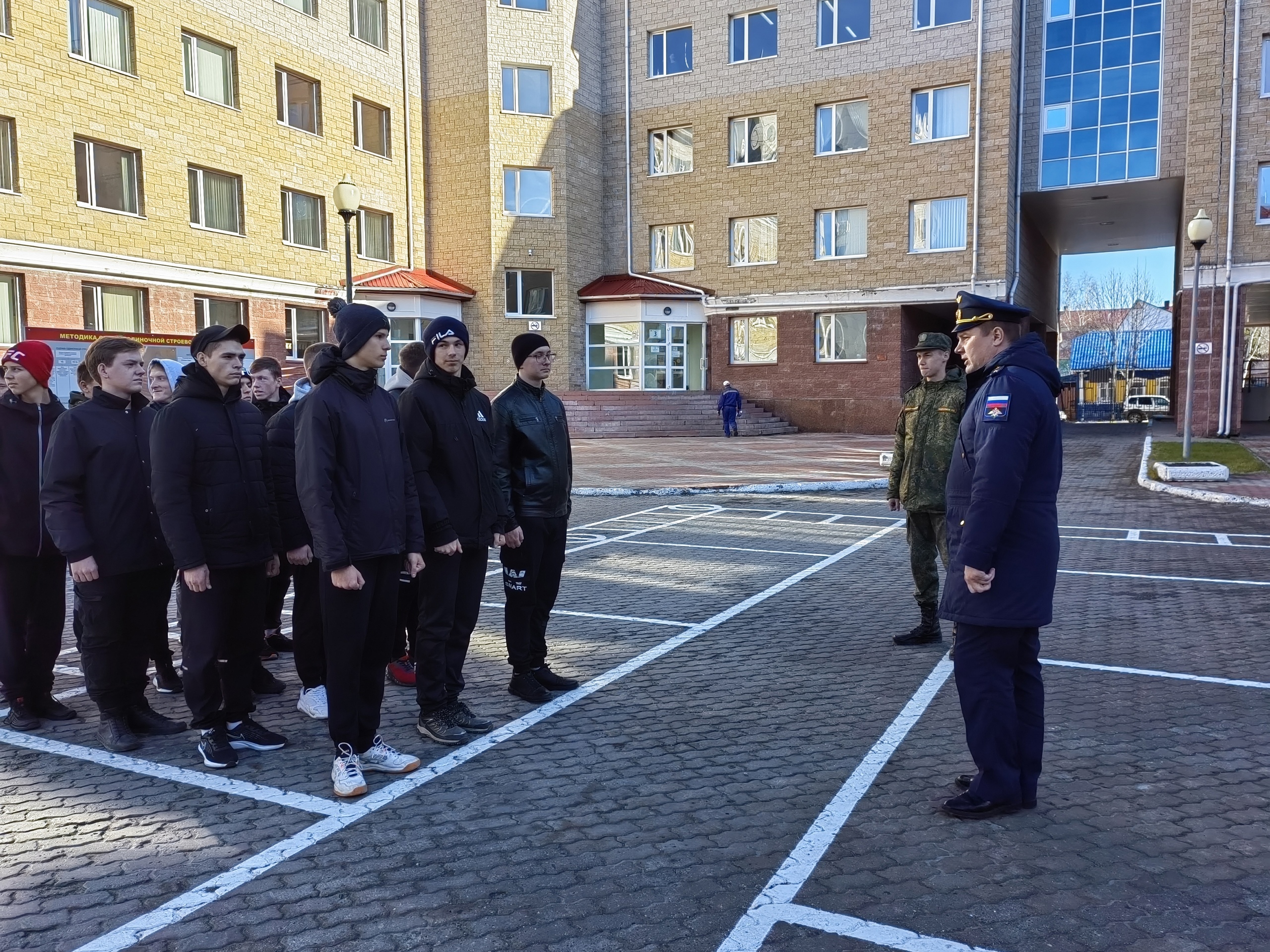 Затем на плацу отрабатывали строевые приемы в составе подразделения: строевой шаг, повороты на месте и в движении.