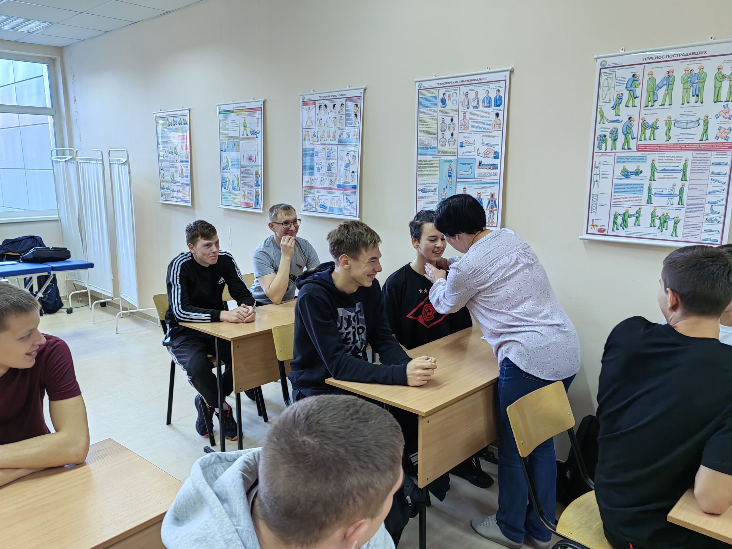 День выдался очень продуктивный. Проведены занятия по основам медицинских знаний, во время которых участники узнали как правильно определяется наличие пульса на лучевой и сонной артериях, а также получили практические навыки оказания сердечно-легочной реанимации на манекене-тренажере.