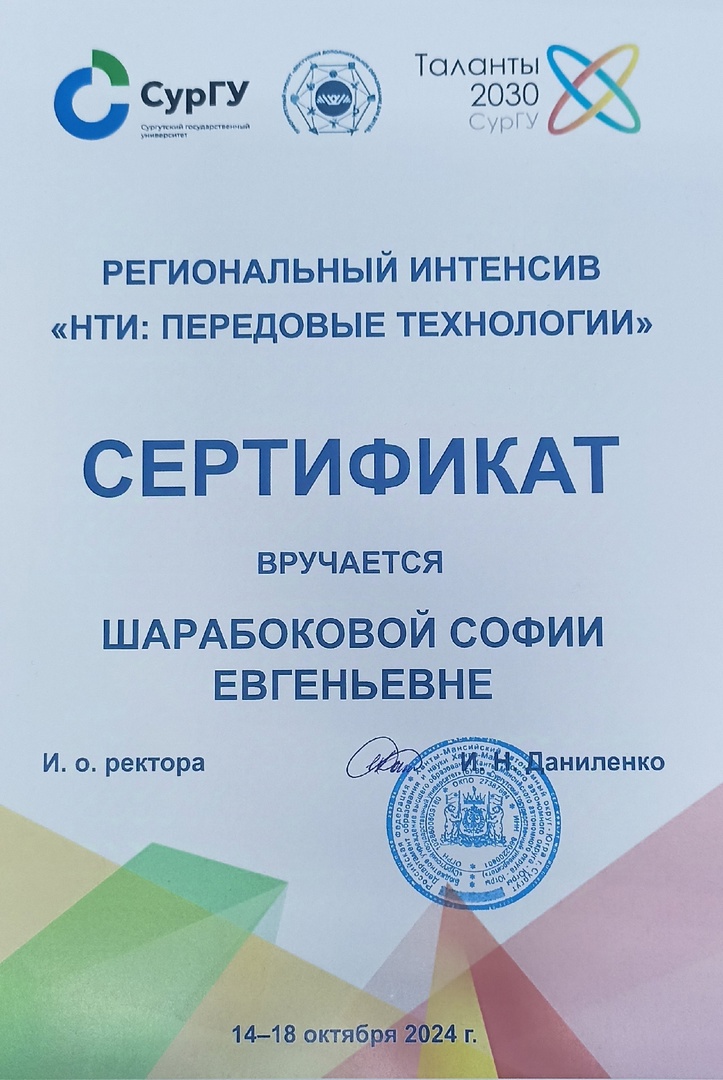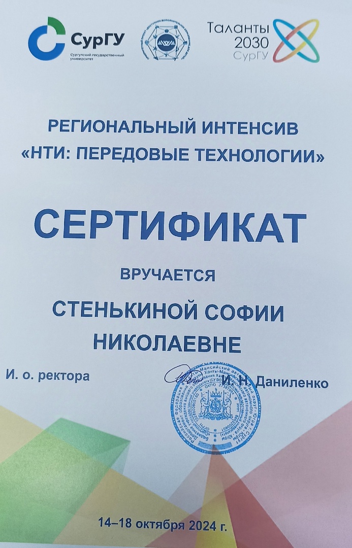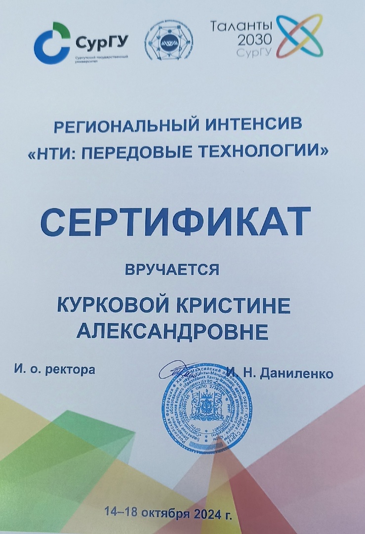 Спасибо всей команде организаторов интенсива Сургутского Государственного университета и директору детского центра дополнительного образования за прекрасную организацию, финансирование и поддержку!
