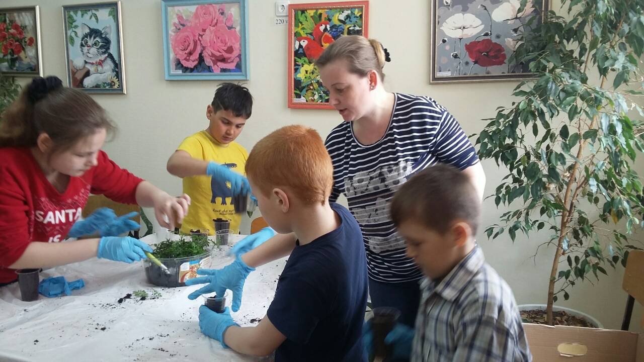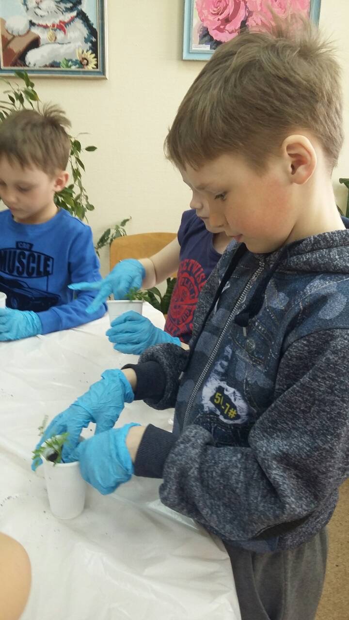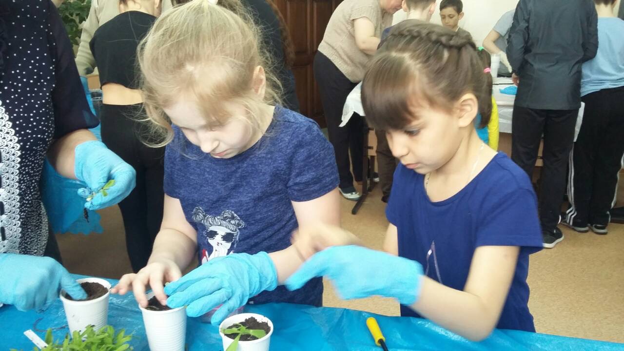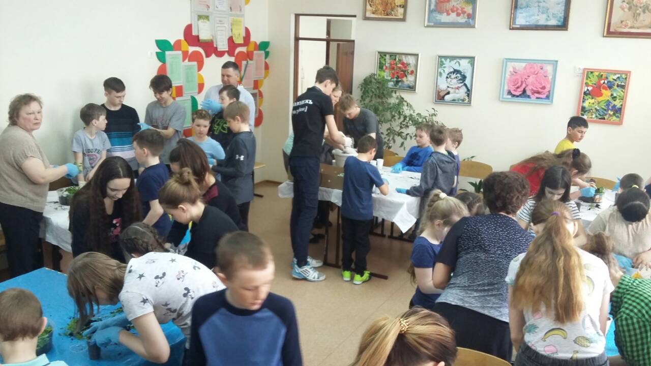 Обучающие совместно с педагогами приняли участие в акции по пересадки рассады для озеленения территории учреждения, территории средней школы и поселка. Под руководством Коневой Виктории Анатольевны были пересажены более 500 цветов различных сортов: петунии, бархатцы, шафраны, ромашки, бальзамины и другие.