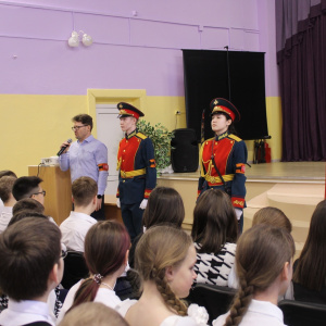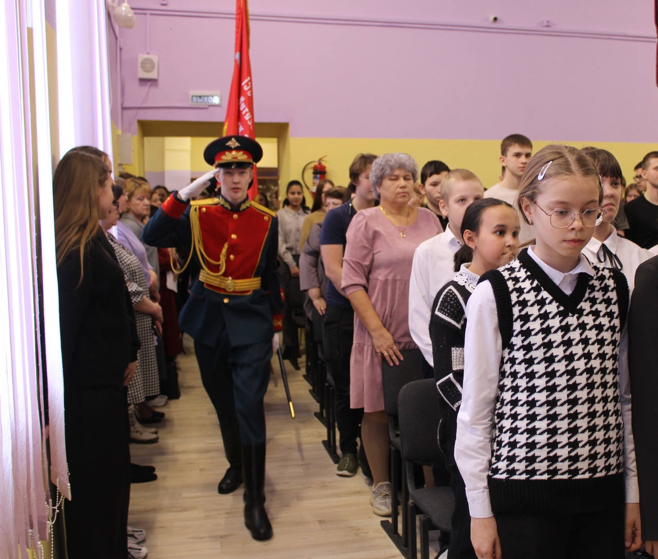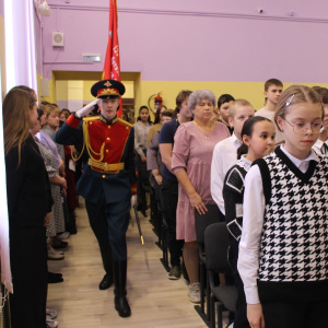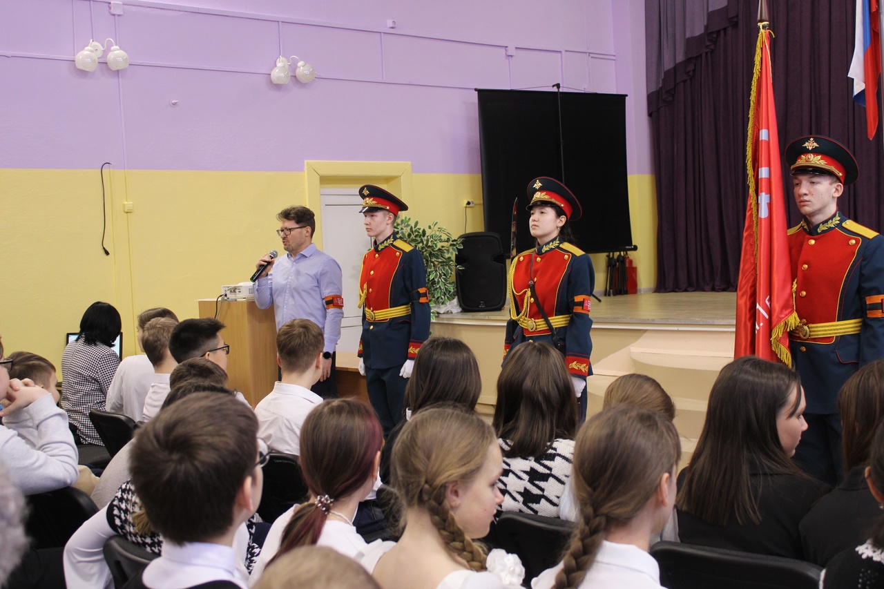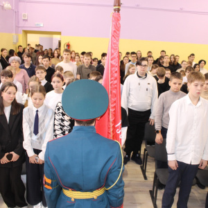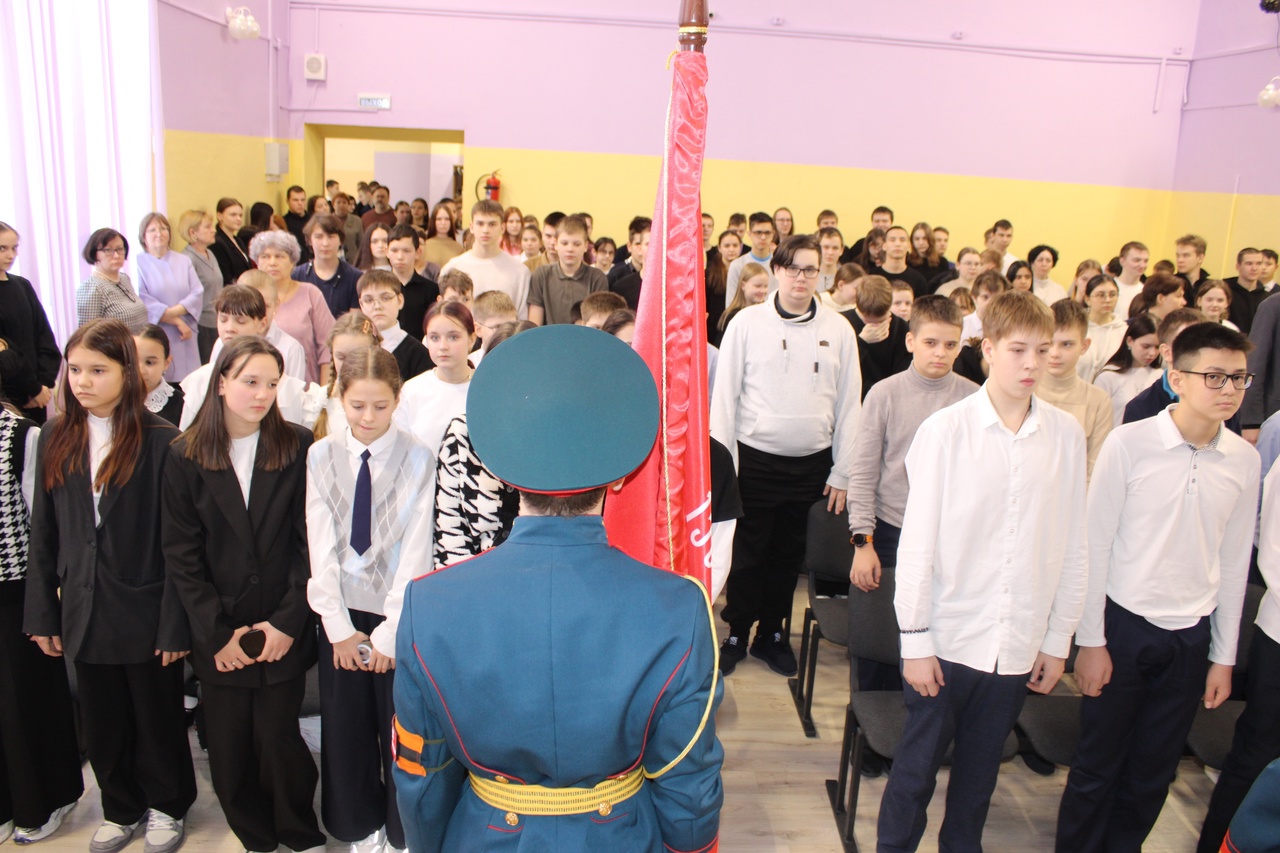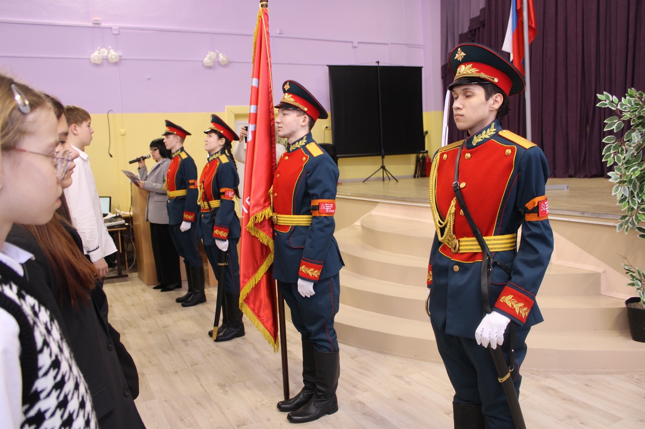 Церемония выноса копии Знамени Победы состоялась на торжественной линейке, посвященной открытию Года защитника Отечества. Почетное право вынести копию Знамени Победы было предоставлено знаменной группе отряда «Ратоборец» МАУ ДО ХМР «Центр дополнительного образования», неоднократному победителю районного конкурса «Равнение на знамя».